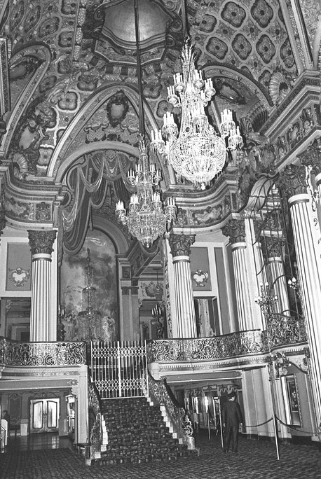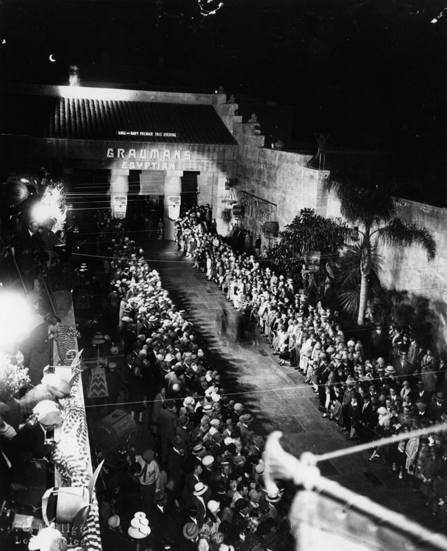 A lot of these theaters were modeled after opera houses. They often used a mishmash of different architectural styles, from French to Chinese to Egyptian to nearly everything in between. Many included fountains, ballrooms, and other amenities. Some theater owners became famous in their own right, like New York’s “Roxy” Rothafel, who built Radio City Music Hall; or L.A.’s Sid Grauman, who built his namesake Chinese Theatre. “Atmospheric theaters” had ceilings designed to look like the night sky (like the Majestic in Dallas or the Fox in Atlanta). “Courtyard theaters” actually did put their audiences under the sky, with open-air courtyards serving as their lobbies (like the Alex in Glendale, California, or the Egyptian in Hollywood).